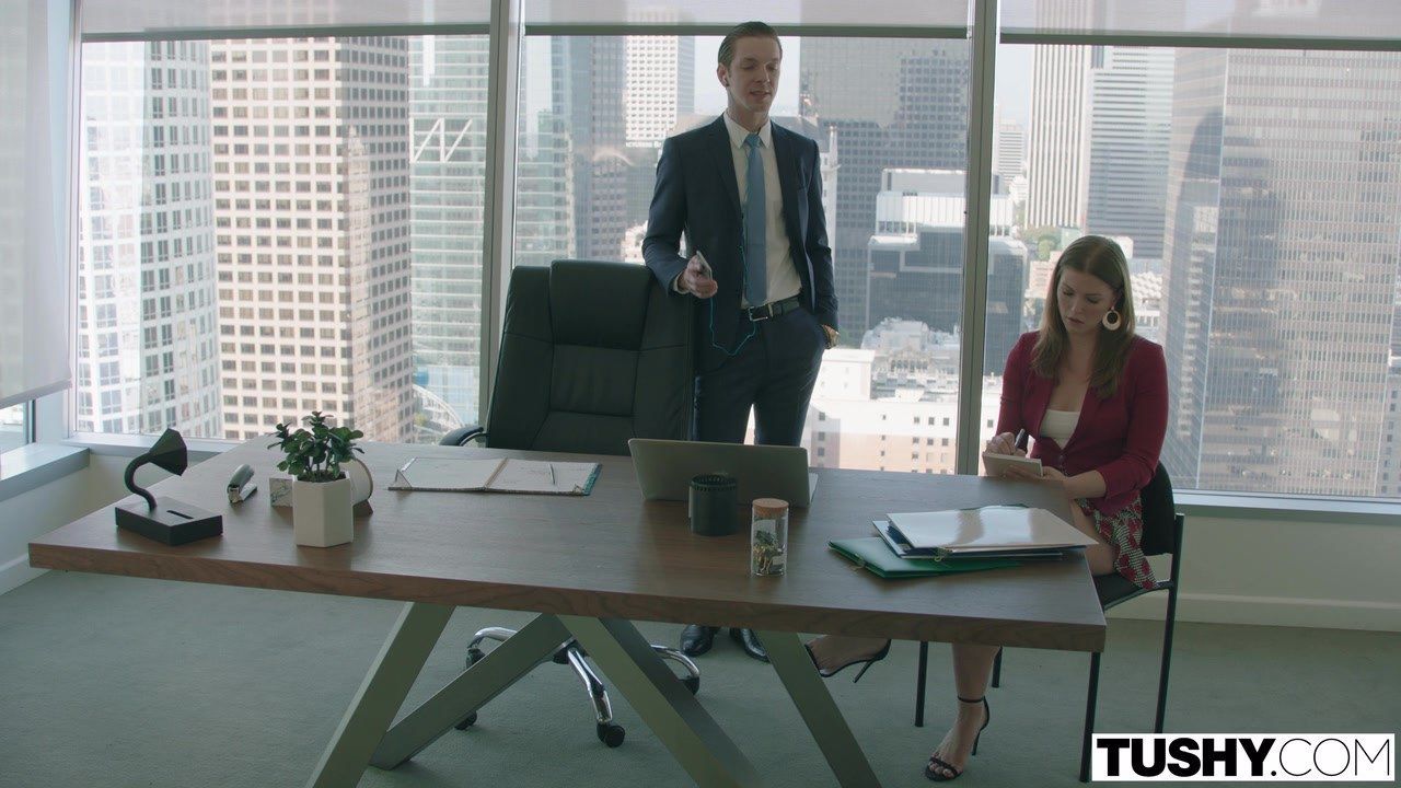 Сначала молодой красотке было страшно работать на очень требовательного босса, который требовал только качественного исполнения своих приказов. Но вскоре девушка не только к этому привыкла, но и влюбилась. А потом начала получать удовольствие от каждого наказания за свои оплошности. И всё, чего хотелось озабоченной подчинённой, полного доминирования над своим телом. Наголо раздевшись, девушка надела себе повязку на глаза и встретила босса в центре зала, стоя в позе раком в ожидании своего наказания. Парень принял игру. Подошел и позволил взять член в рот. Даль облизать яйца. Подрочил и начал трахать в ротик по самое горло. Засадил в киску в позе наездницы, а пальцы вставил девушке глубоко в очко. А потом вместо них вставил свой орган в заднюю дырочку двушки. И ей пришлось скакать анальной наездницей на головке начальника. Брюнетка стала раком и получила анальное наказание сзади. Дальше босс развернул помощницу на спину и засадил в её горящий от проникновений анус сверху. Вынул, схватил за волосы, грубо поставил на колени и обкончал девушке лицо.