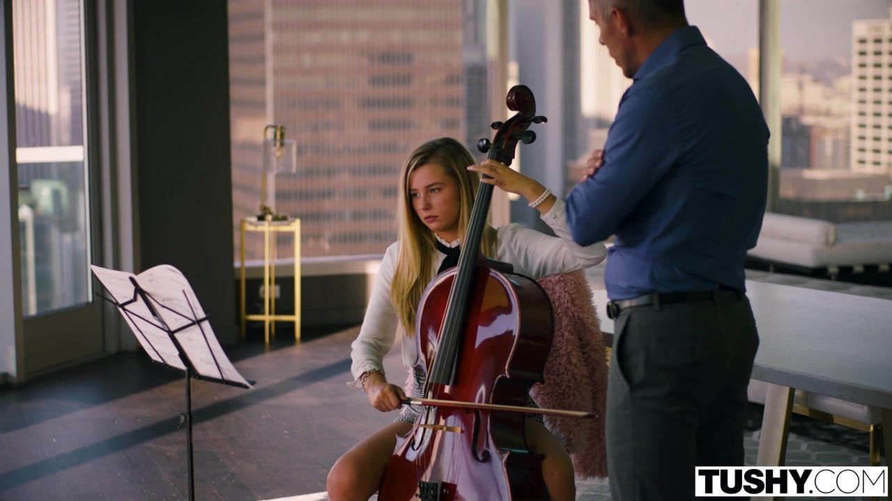 Девушка занималась музыкой не потому, что она была ей сильно увлечена, а потому, что ее заставляла строгая мать. Поэтому молодая блондинка вела себя на каждом занятии непослушно и личный наставник, симпатичный зрелый мужчина, нашел другой способ, как привить девушке любовь к музыке. Он сделал перерыв, затащил блондиночку к себе на руки, задрал на ней короткую юбку и принялся шлёпать рукой по заднице. Сорвал трусы, ввёл в анус два пальца и раздрочил тугое очко. К такому уроку ученица была явно не готова, но девушке понравился такой подход и она позволила репетитору продолжить заниматься своим анусом. Послушно встала на колени и взяла в ротик. Дальше приласкала бритые яйца, взяла оба в рот и облизала. Присела на край стола и получила оральные ласки обеих дырочек. Развела ляжки в разные стороны шире и учитель музыки на всех оборотах принялся оттягивать молодуху в киску и анал. Студентка занялась анальным сексом с большим членом учителя в позе наездницы и получила его в зад, стоя перед мужиком раком. Развернулась на спину и получила учительский камшот на язык.