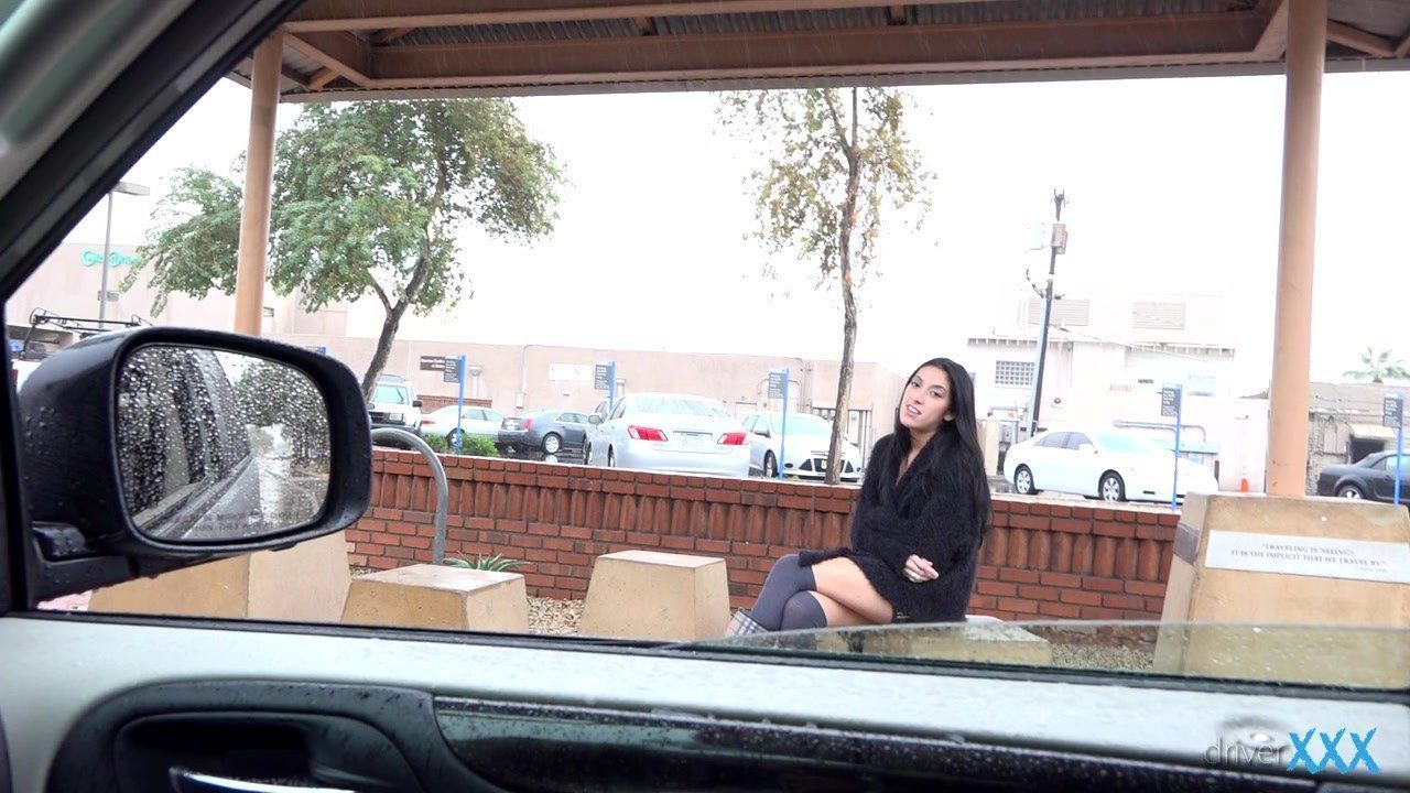 На улице шел сильный дождь, и мужик просто не мог проехать мимо девушки, которая одиноко сидела на остановке. Он предложил брюнетке подвезти ее и после недолгих колебаний, она согласилась. Разговорившись по дороге, девка поделилась с мужиком своей проблемой – она считала, что у нее маленькие сиськи. Но водитель, наоборот, сделал ей комплимент, полюбовавшись ее голой грудью. Это настолько понравилось цыпочке, что она принялась ласкать член мужика. Она страстно сосала его член, а он одной рукой держал руль, а второй ласкал ее пилотку. Самцу пришлось остановиться, чтобы поудобнее устроиться в машине на заднем сидении и выебать как следует попутчицу.