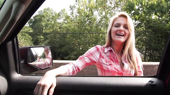 Блондинка сбежала из дома, чтобы больше не видеть своего бойфренда, который постоянно ей изменяет. Девка так торопилась, что забыла сумочку, в которой были все ее деньги. На ее счастье, ей попался водитель, который подобрал ее и был готов подвезти куда угодно, если она даст ему себя трахнуть от первого лица. Взяв член в свои нежные руки, красотка ласкает и сосет его до тех пор, пока он не становится каменным. Разгоряченная цыпочка сбрасывает с себя одежду и принимает возбужденный член в свою гладкую пилотку. После страстного секса в машине, парень вытаскивает стояк и кончает на ее довольное лицо.