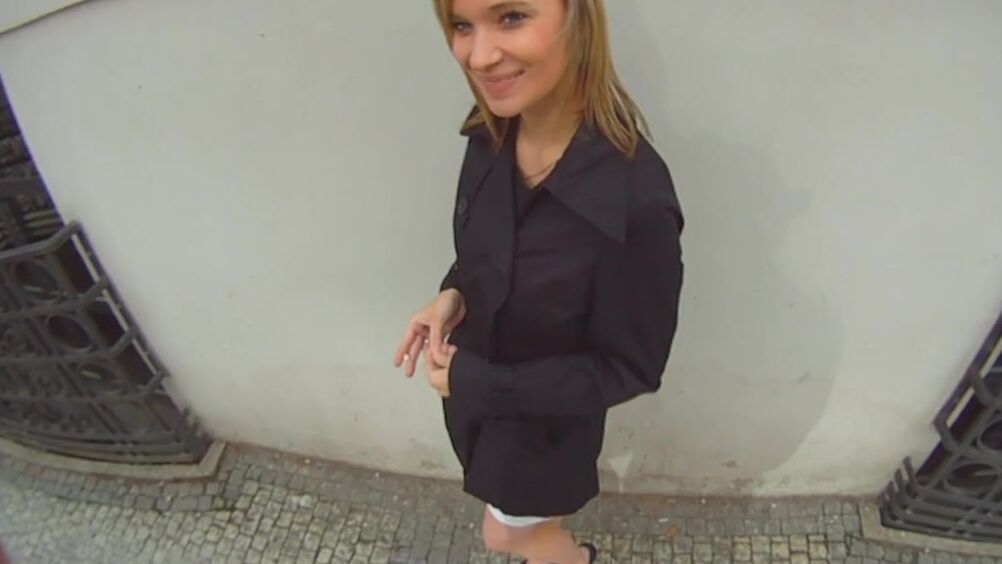 Увидев молодую девушку, парень решил к ней подкатить и подцепить телочку. Разговорившись, он предложил ей денег, если она ему отсосет ствол и перепихнется в ближайшей подворотне. Конечно, девушка для приличия немного поломалась, но потом пошла с незнакомцем, чтобы заработать быстро денег. Светловолосая телка умело ласкает и сосет член парня на улице, укрывшись от посторонних глаз, а после отсоса садится на его член и трахается за деньги. Блондинка и сама получает удовольствие от этого спонтанного секса. Насладившись ее пилоткой, парень кончает, обливая ее лицо спермой.