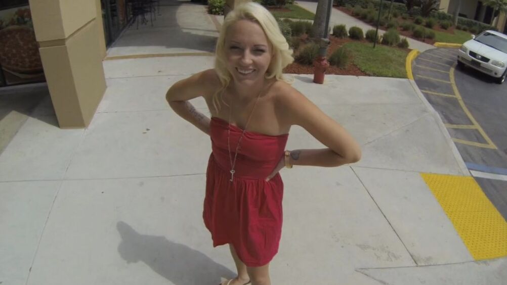 Стройная блондинка шла по парковке возле торгового центра, а похотливый чувак решил ее подвезти. Цыпочка с удовольствием прыгает в авто симпатичного парня, и он катает ее по городу. Прокатив красотку по окрестностям и немного поболтав с ней, парень уговорил блондинку отсосать в машине. После на заднем дворе дома блонда продолжила сосать член, и сама сильно возбудилась от этого. В итоге, парень уговорил стройную цыпочку позволить трахнуть ее в пизду. Она так кайфовала от проникновения горячего член и стонала, даже не думая, что весь трах он снимает на камеру, скрытую в его шпионских очках.