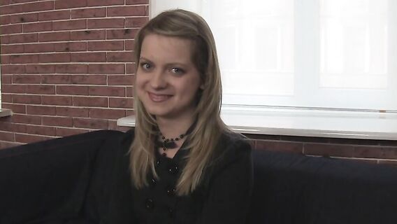 Заприметив на улице симпатичную телочку, мужик не смог пройти мимо нее. Этот болтливый самец уговорил голубоглазую красотку попробовать себя на кастинге. По началу молодая телочка сильно стеснялась, но потом, поняв, что ей за этот кастинг могут неплохо заплатить, немного раскрепостилась. Скромница разделась и засветила свои прелести на камеру, а потом побаловала мужика минетом. После отсоса возбужденный мачо был просто обязан устроить секс с застенчивой русской девушкой на этом мягком диване. Он трахал ее раком, а потом блондинка скакала на его стояке, кайфуя от проникновения. В конце телочка еще разок отсосала и получила сперму на сиськи.
