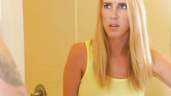 Сводные брат с сестрой постоянно конфликтуют между собой из-за всякой ерунды. На этот раз они не поделили ванную. Парень опаздывал по своим делам, а блондинка никак не хотела уступать ему ванную комнату. Тогда сводный брат решил проучить сестричку так, чтобы она навсегда запомнила этот урок. Повалив ее на кровать, парень уселся на нее верхом и засунул член ей в рот, заставляя отсасывать его горячий пенис. После он насильно засунул свой ствол в письку сестры и начал ее трахать, не обращая никакого внимания на ее крики. Он зажал ее рот сильно рукой и продолжил жестко трахать в пизду раком. Отымев сестру как следует парень кончил ей на лицо.
