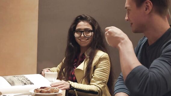 Длинноволосая брюнетка в очках очень любит искусство. Русская девушка сегодня познакомилась с парнем, который разделяет ее интересы, поэтому она не была против продолжить с ним знакомство и общение в более интимной обстановке. В домашней обстановке выяснилось, что маленькая русская цыпочка любит не только искусство, но и секс. Девушка не возражала, чтобы парень ласкал ее пышную грудь и с удовольствием сосала его мощный член. Разгоряченный минетом молодой самец раздвинул ноги длинноволосой брюнетки, чтобы вылизать ее аппетитную щелку, а потом вставить в нее ствол. Трахнув свою новую знакомую в сочную киску, он кончил ей на язык.