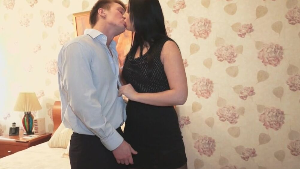 Русская проститутка надевает соблазнительный наряд, чулки и отправляется на вызов своего очередного клиента. Опытная брюнетка в черных чулках точно знает с чего начать, чтобы возбудить парня как следует перед жарким сексом. Девушка жарко отсасывает член молодого самца, который прямо у нее во рту становится все тверже и больше. Возбужденный парень решает побаловать шлюху тоже оральными ласками, поэтому тщательно работает языком над ее влажной киской. Разгоряченная брюнетка удовлетворяет клиента своей сочной пилоткой и трахается с ним во всех позах на кровати, заставляя его чувствовать себя в постели настоящим самцом. Довольный парень поливает ее бритый лобок спермой.
