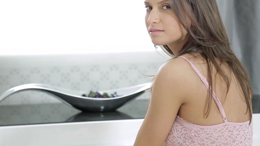 Молодая русская красотка в розовом кружевном боди, уединяется для мастурбации на кровати. Развратная и горячая, она обнажает свои большие сиськи, чтобы ласкать их. Рука сама тянется к промежности, встав раком, она расстёгивает боди и добирается до бритой письки. Малышка активно мастурбирует свою сочную щелочку, постанывает и меняет позу. Удобно расположившись на спине, и раздвинув ноги, она стимулирует клитор, облизывает влажные пальчики и щипает себя за соски. Процесс так нежен и гармоничен, её тело извивается от наслаждения и прикосновений, набухшие губки и клитор отзываются и заставляют девушку стонать. Кульминацией становится чувственный оргазм.