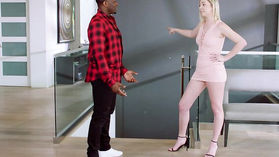Блондинку ждал один очень неприятный сюрприз. Когда она собиралась со своим парнем на отдых, с которым строила отношения последние полгода, ей позвонила подруга и сообщила, что парень ей изменяет. Блондинка сильно не расстроилась и решила тоже потрахаться на стороне. И когда в двери постучал чернокожий сосед, сразу поняла, что будет заниматься сексом с ним. Пригласила парня войти к себе в дом. Опустилась перед негром на колени. Сама откатила ему головку члена, направила её себе в рот и начала посасывать. Даже облизала негру яйца, чтобы он быстрее возбудился. Повернулась спиной, и чернокожий парень сделал белой девушке куни, задирая подол её платья. Трахнул раком, раздел, уложило на кровать и опять прижался губами к хорошо выбритой пилотке. Получил ещё один минет, и красивая блондинка решила присесть на член негра верхом. Затем слезла, облизала длинный член негра язычком и изменила в позе раком. Получила серию проникновений сзади и в позе наездницы, и когда негр кончил в киску, достала оттуда сперму на пальчике и облизала.